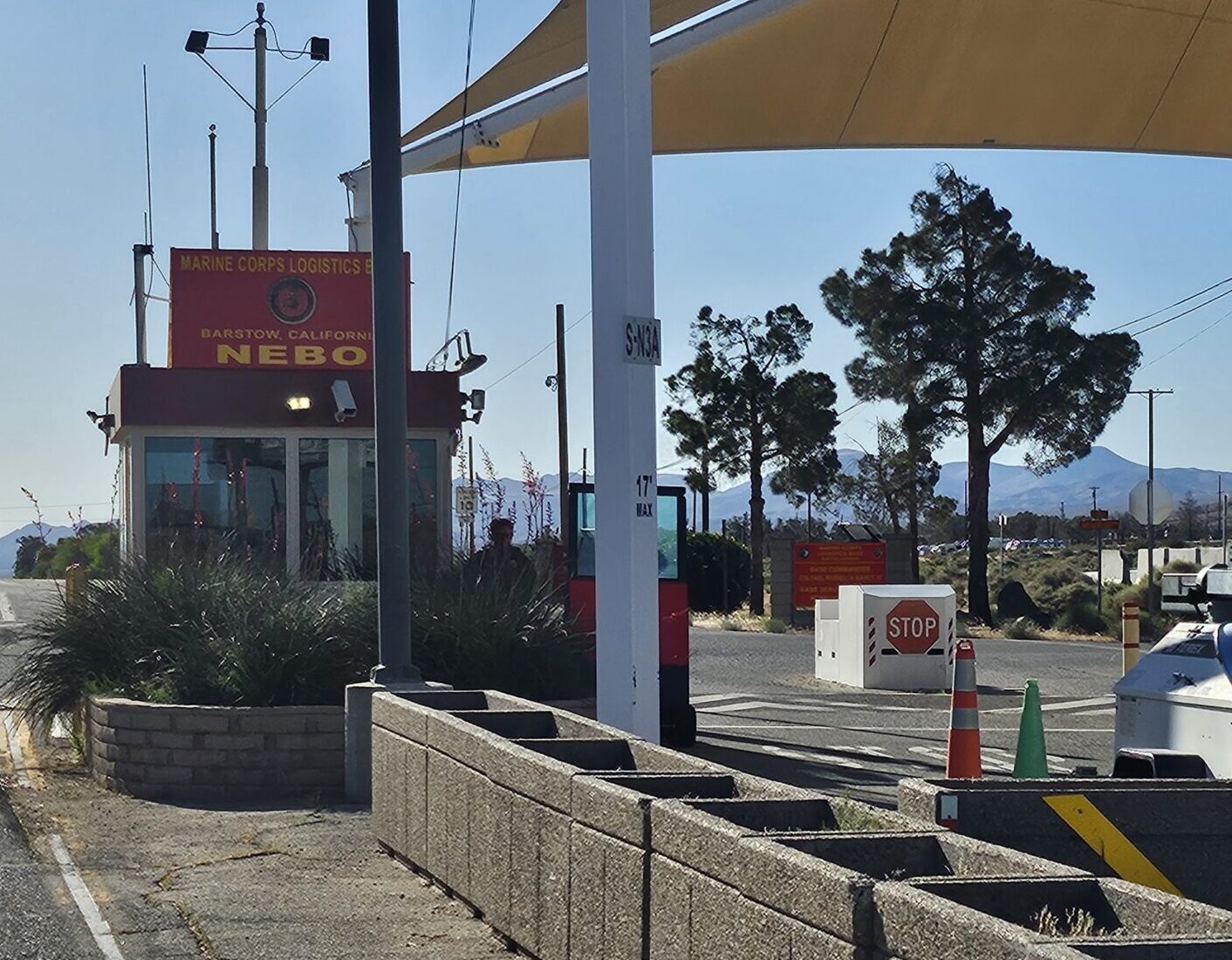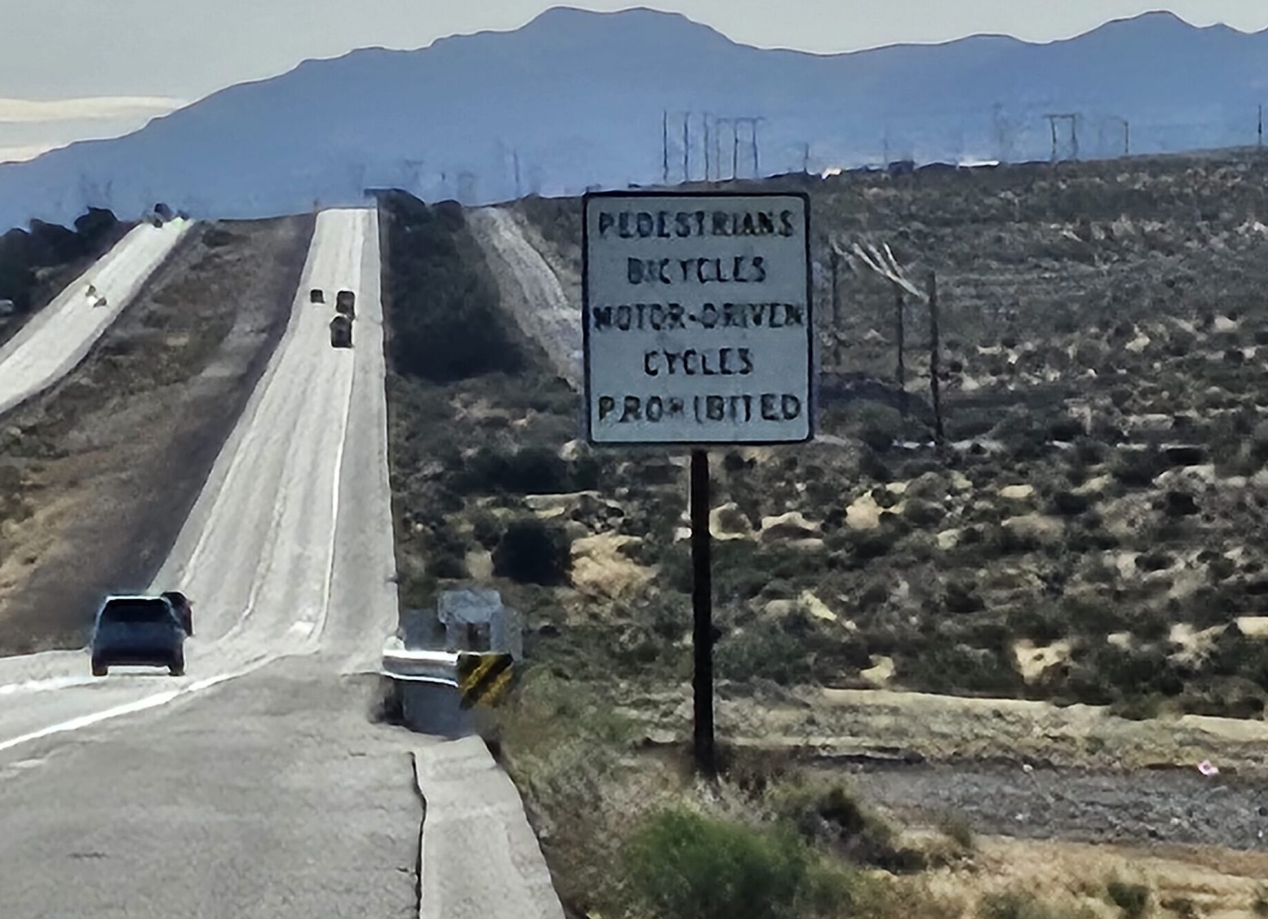 We awoke to a sunny dry day with expected tailwinds. Carol was still carrying our panniers, so we had the potential to make good time. As we ducked under I 40 heading East along Main Street we came to the entrance of the US Marine Corps NBO Center. It was the most direct way to start our route, but there was a problem. Without proper authorization, we were not allowed to pass. My Lone Rider Business card could not trump their Gandalf “You Shall Not Pass”. The two guards and their large German Shepherd were very courteous and we knew when to follow instructions and this was definitely the time. So, we turned around and found our way to the Old Route 66 highway via another route. We were told we could ride on I 40, which was surprisingly easy, with a wide, smooth shoulder. Unfortunately, as soon as we came to the first exit, there was a sign that basically repeated Gandalf’s Warning “You shall not pass!”