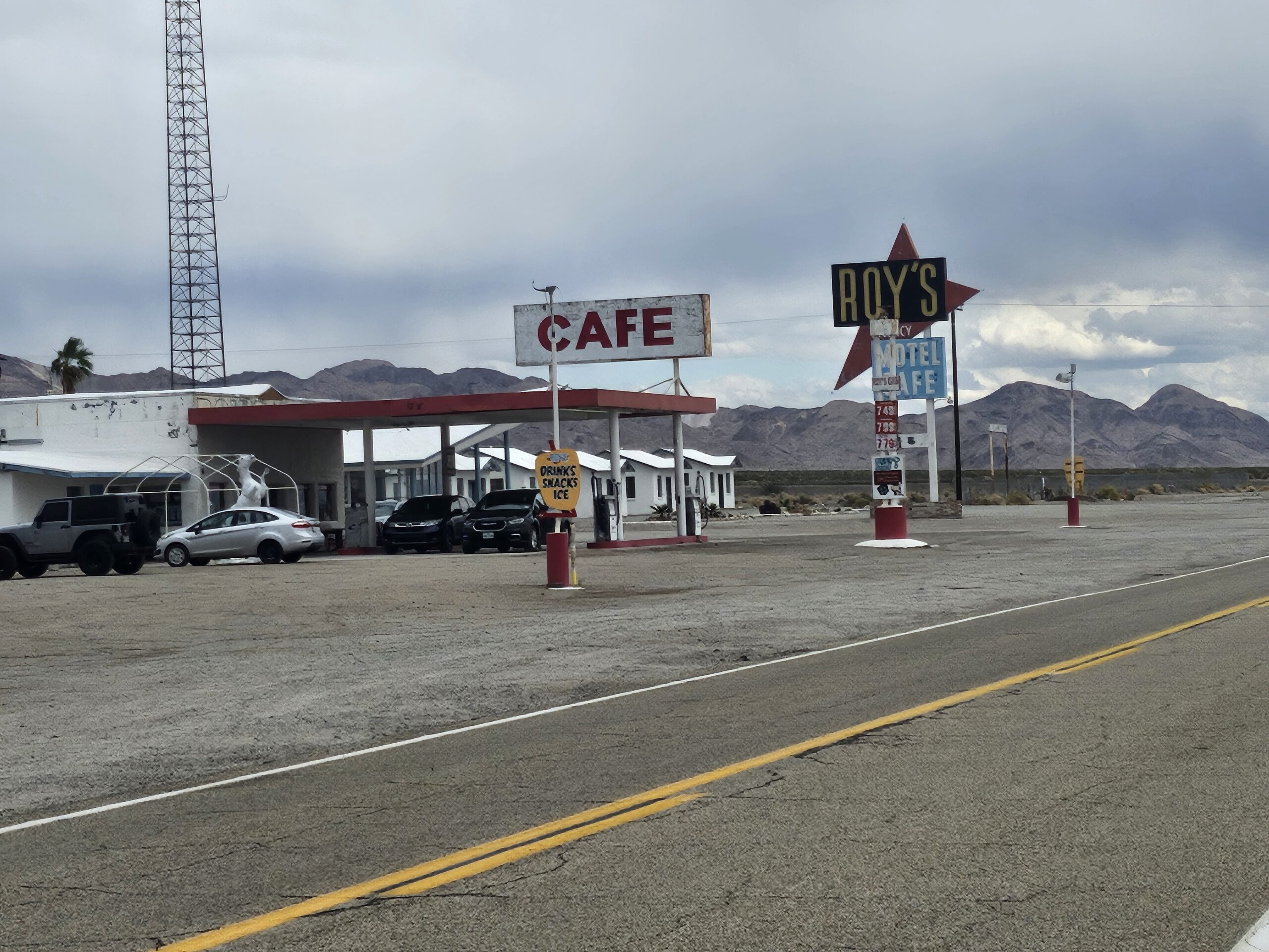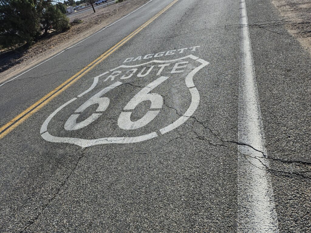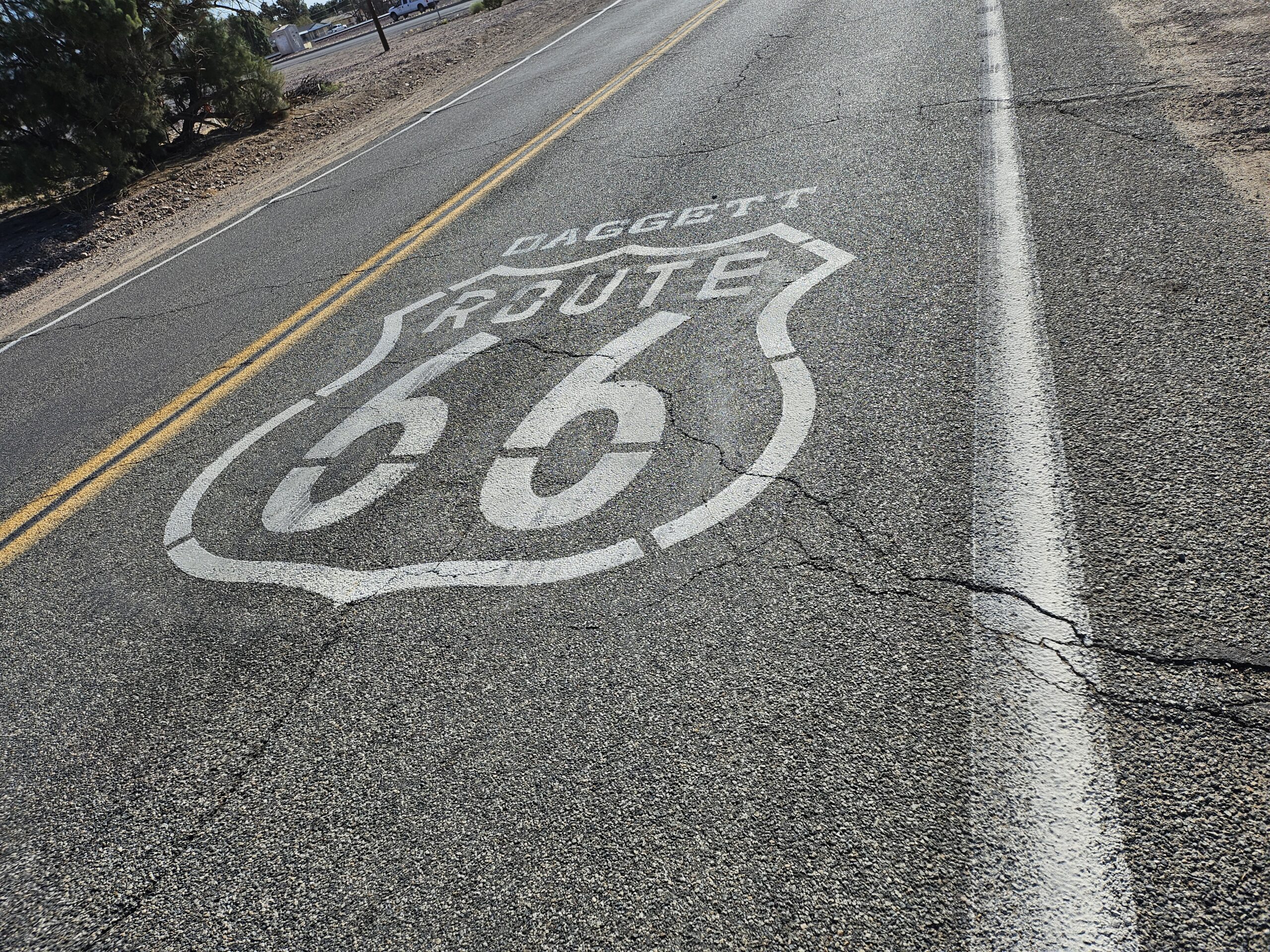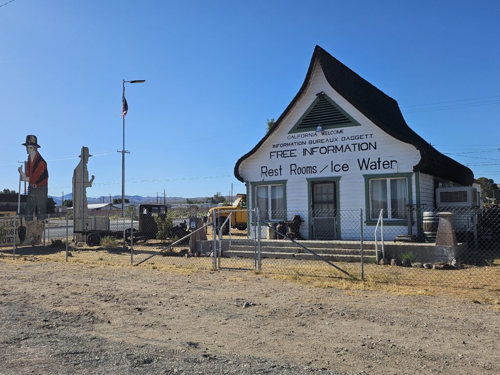 We turned off the interstate and got onto the side road which was pretty decent. We were on a path that was part of the original Route 66, so we were OK. We soon saw the markers of a town that was once an important stop along the way. Painted on the road was the logo that said we were passing Daggett. There were remnants of the bygone era still standing.