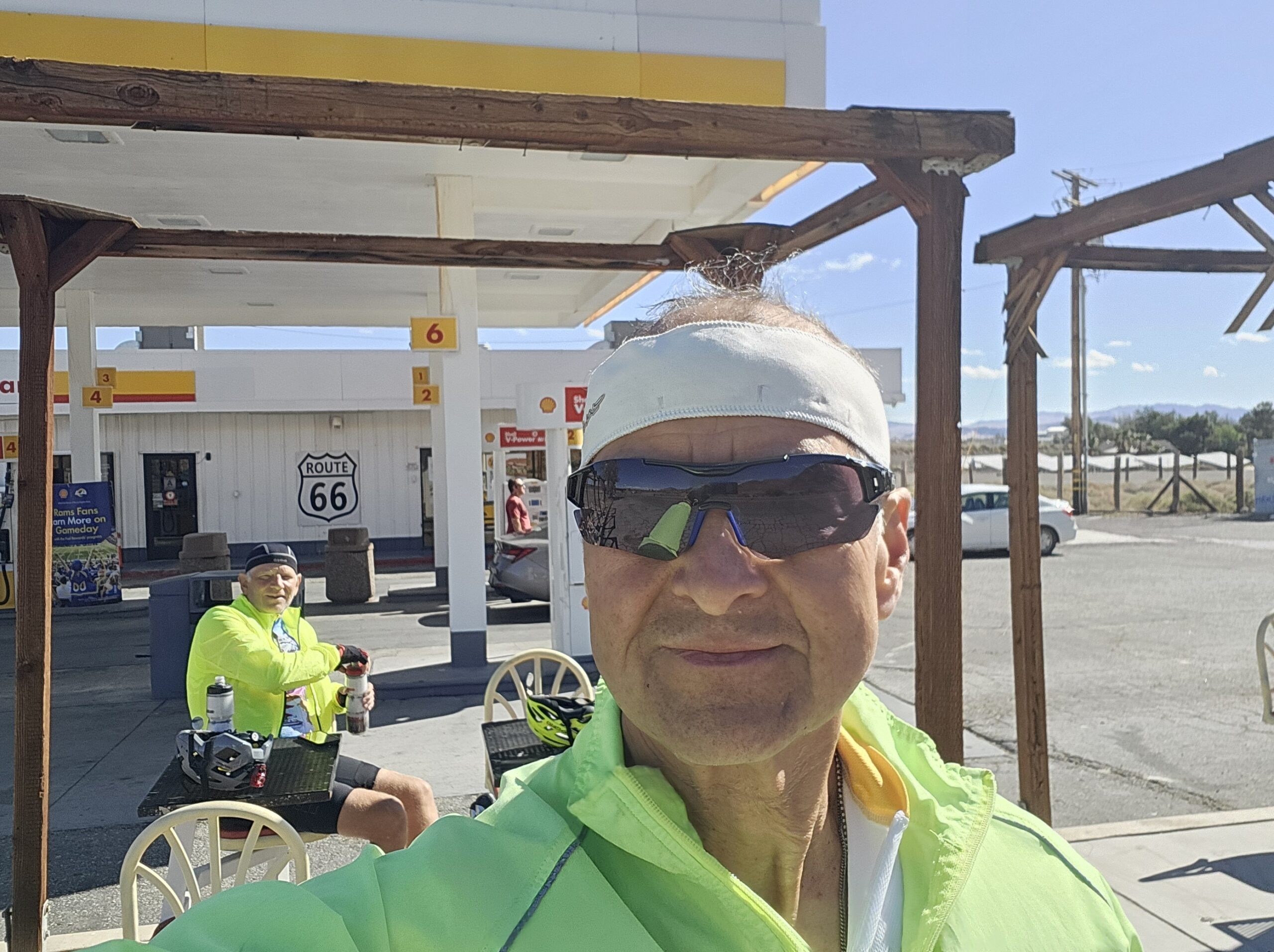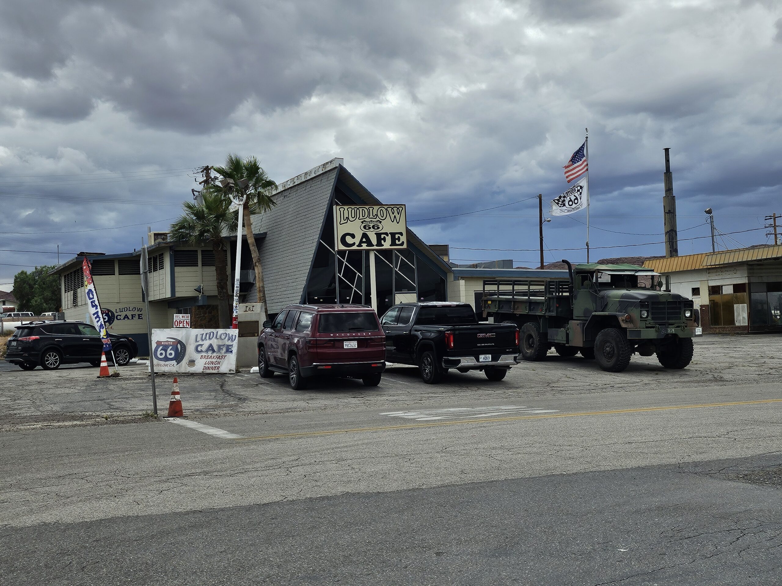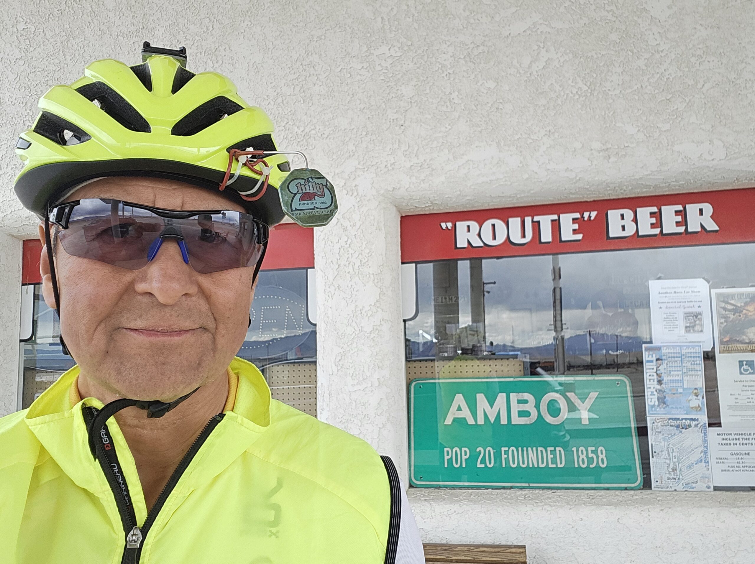 We crossed over I 40 again to the South side at Newberry Springs. We had a lot of lonely miles as we made our way to the next town of any significance. We had one 8 mile climb before we started a constant descent to our day’s destination near Amboy. After going under I 40 again, we headed toward Ludlow where we could rest and eat.