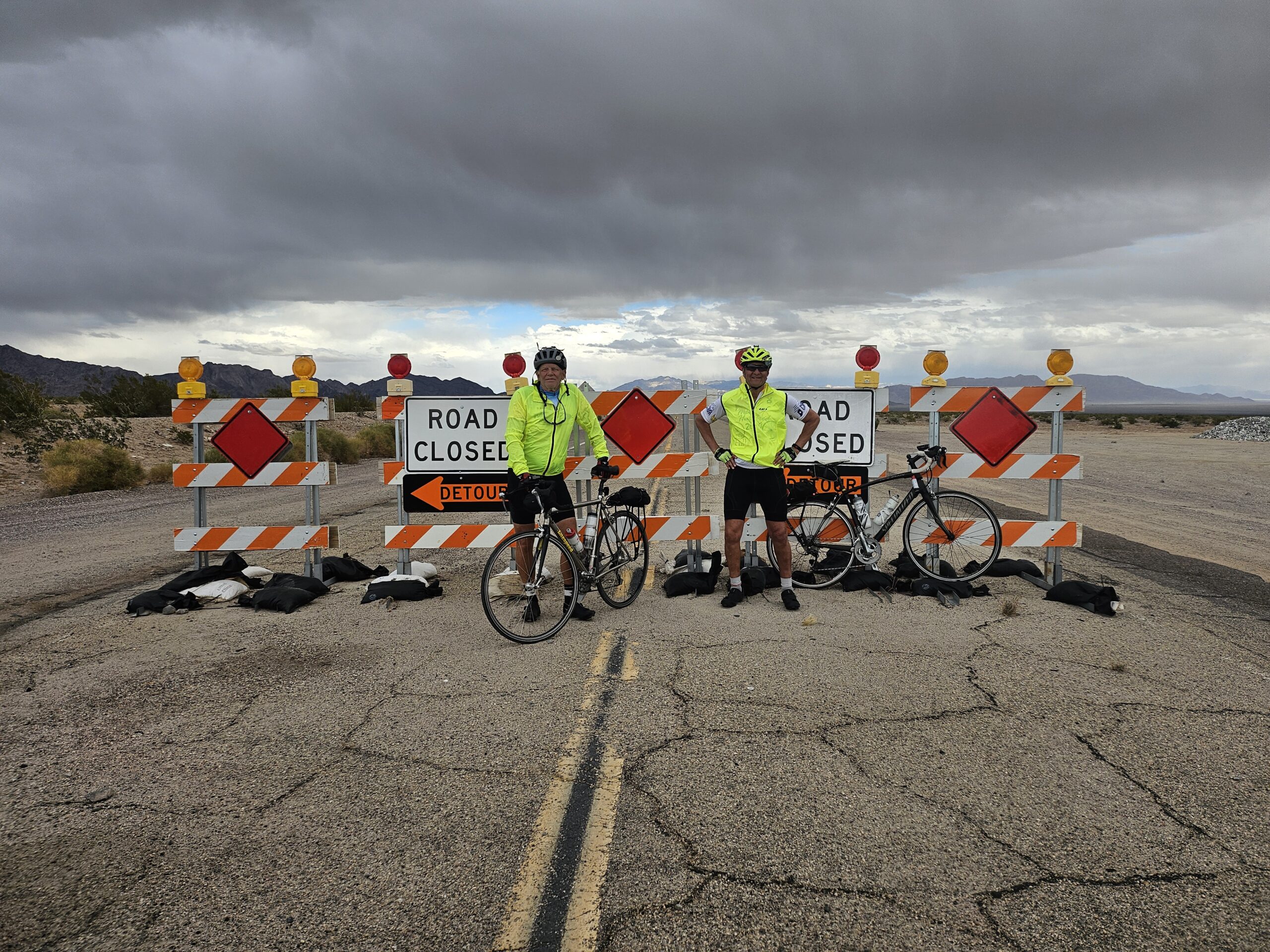 We had passed three road construction sites at washed out bridges with short stretches of gravel road on those final 6 miles. Then we came to a sign that said the road was closed. Like Rocky Balboa, we are trying to determine if it is closed to everybody or just the general public. We talked about our alternatives for continuing our ride to Needles over dinner. What will we do? Find out tomorrow! We don’t know either, but it’s all part of the adventure!