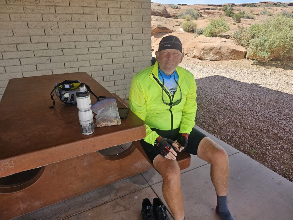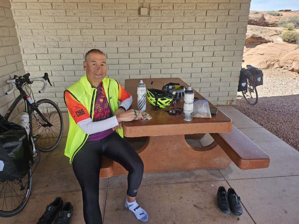 The day started with a headwind of 3-5 mph. It would get stronger as the day went on, so we tried our best to minimize stops. Even when we were going downhill, the wind tried to slow us down. Luckily, most of the downhills were stronger than the winds today. We and our butts were more than ready for the rest stop. We bypassed the meteor exhibit and went the extra mile for simple simple toilets and fresh water.