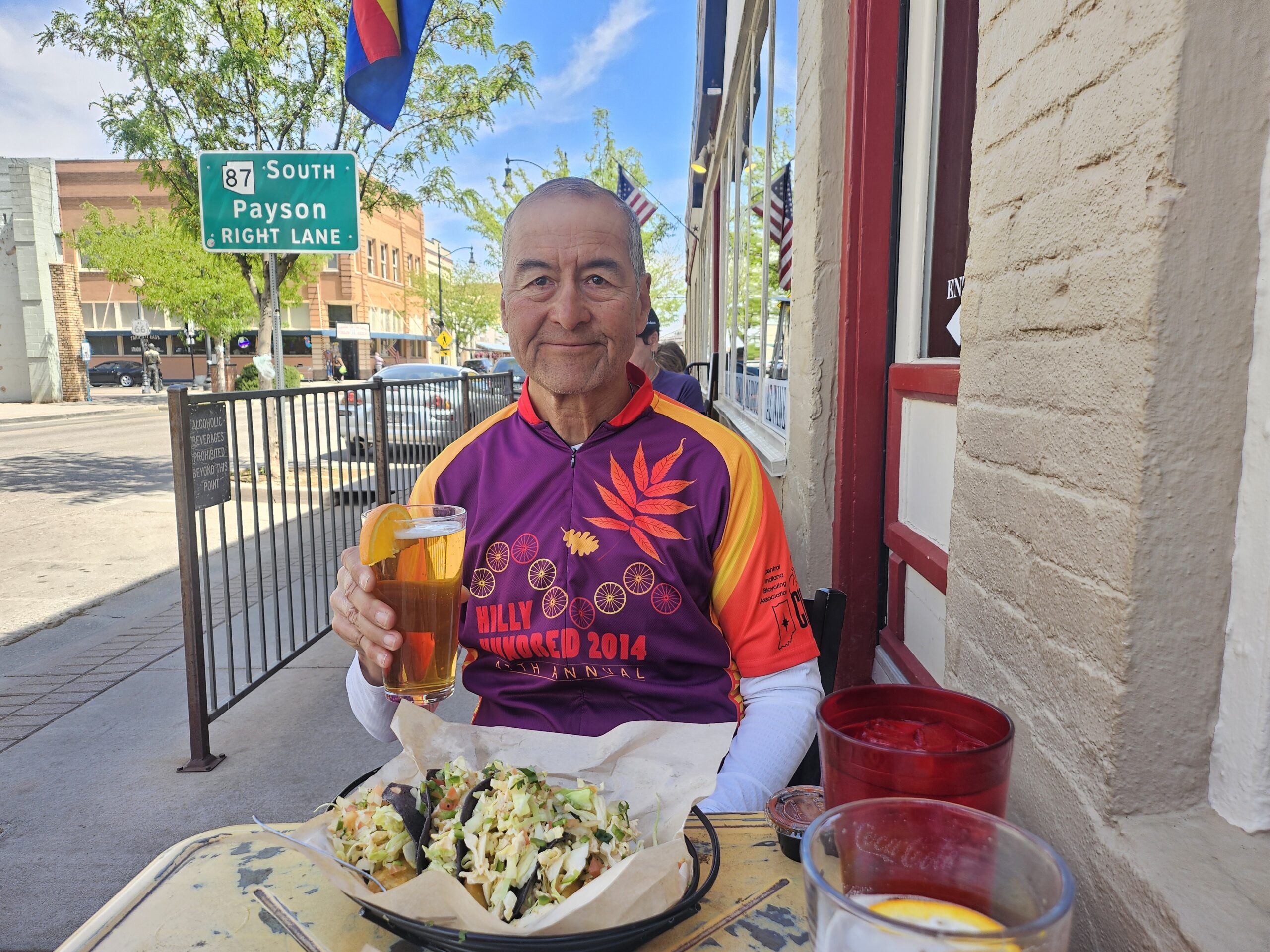 When were done with our lunch and fun downtown, we rode north to a Safeway to get whatever we might have for our dinner. It would inevitably include a pint of ice cream. For me, I added a couple of hard boiled eggs and a banana, beyond a salad and a beer. I knew neither would be at our continental breakfast tomorrow. We loaded our goodies into our string bags and rode back to the hotel so we could officially check in. Many of the hotel clerks seem to be on autopilot when they check us in. We walk in the door wearing biking jerseys, shorts, a helmet and make clacking noises from our specially cleated shoes. And here in particular we had left our panniers earlier. Granted, this was a different clerk than the one we had met a few hours ago. But still, after we tell them that we do not have any pets and we came in on bikes, they still need a Vehicle Model, etc. I described Hidalgo as best I could.