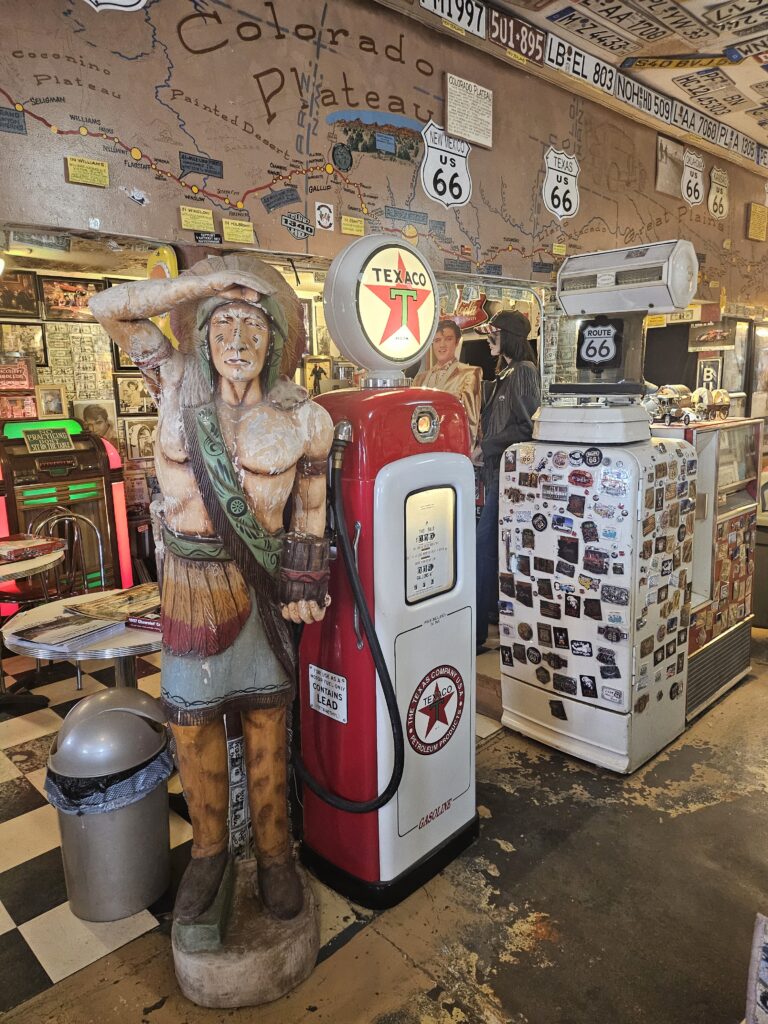 “Hello, this is The Aztec Motel in Seligman, Arizona. Due to a major accident on the I40 highway, our entire area will be without power, water, or gas until 8 PM this evening. The highway is closed between Ashfork and Seligman. ADOT has created a detour along Crookton Rd, aka the Old 66. It is a direct route straight into our town. We apologize for this inconvenience. We assure you we are doing our best to make your time here comfortable until the services are restored. Thank you and travel safe. ” And later came this while we were eating lunch in Peach Springs: