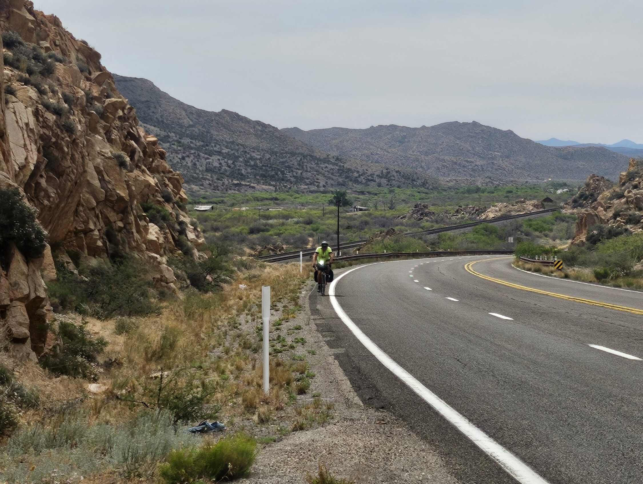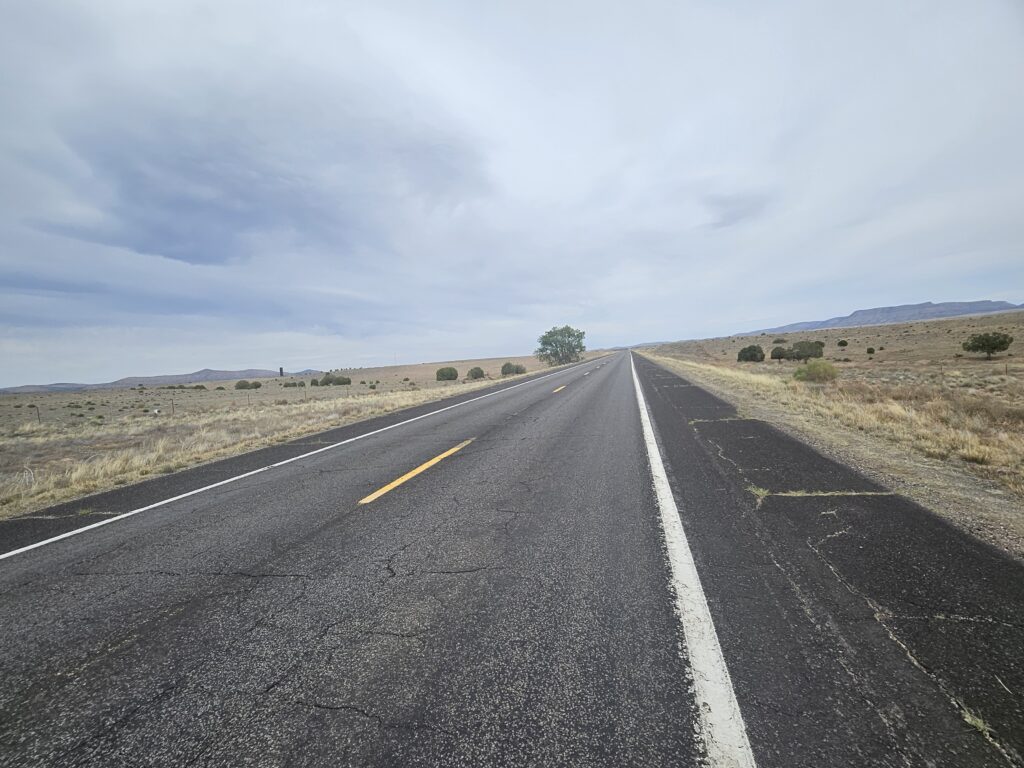 Typical pavement on the long lonely highway. Sometimes the road was rough, sometimes the shoulder was bumpy, and sometimes both.