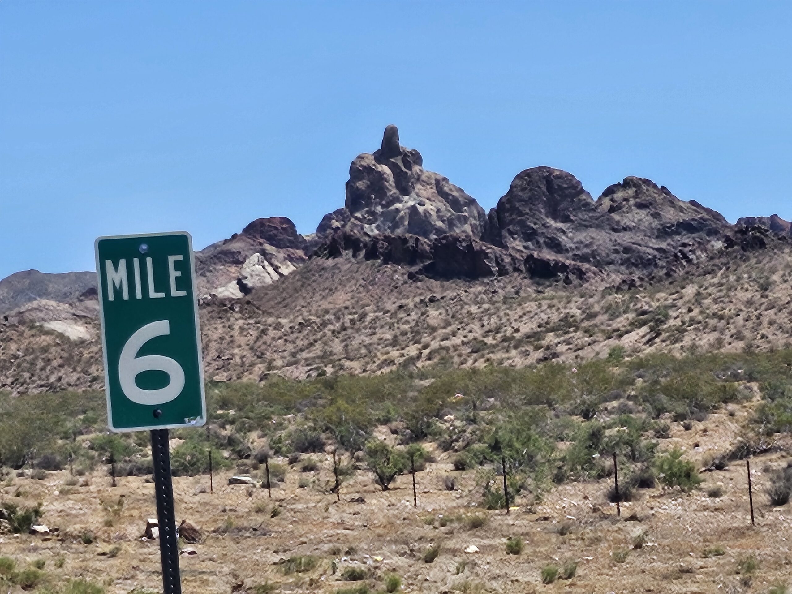 We both needed a rest and refreshments. We were not going to have any facilities for the next 15 miles. We stopped at a gas station just off of AZ-68, which would take us almost to Kingman. We each had close to a liter of Gatorade from a soda fountain and a muffin we split. We filled our water bottles with Ice from the fountain and continued our climb. Over the next 9 miles, we climbed more than 2,000 feet. We decided to eat the elephant one bite at a time, so we would stop almost every mile to give ourselves a chance to recover.