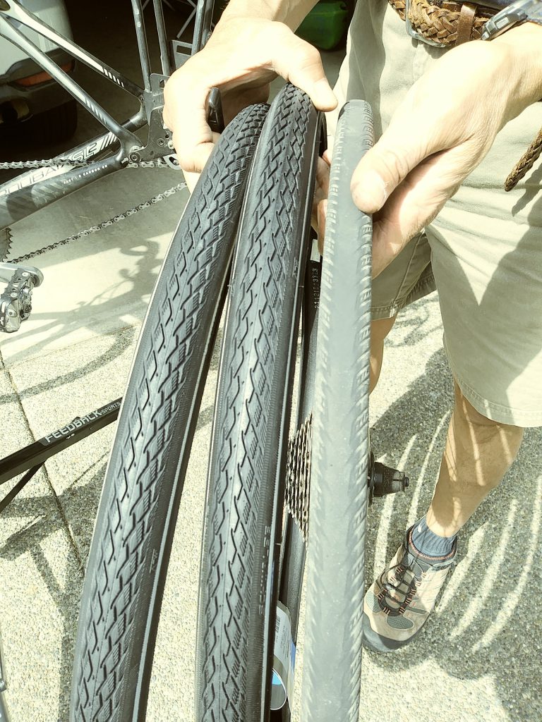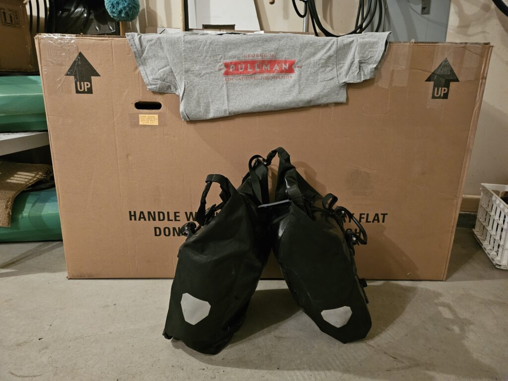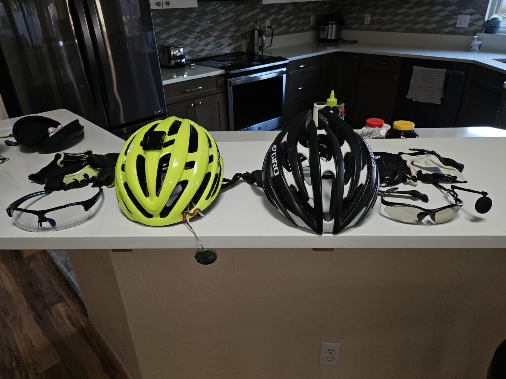 Now, 10 years from the first ride and five since the last, there are even more changes. I have added wider tires – from 700×25 to 700×28, which is as big as Hidalgo can hold. Some of the clothing and gear have just worn out over the ten years. The buckles on my shoes broke off, my convertible rain jacket was disintegrating on the inside, got a new pair of gloves, improved lighting, and a new helmet and sunglasses. I’m taking a borrowed GoPro and have been using a helmet mounted rear view mirror since 2019 in place of one attached to the sunglasses. I have a new tablet along with a mini keyboard and mouse.