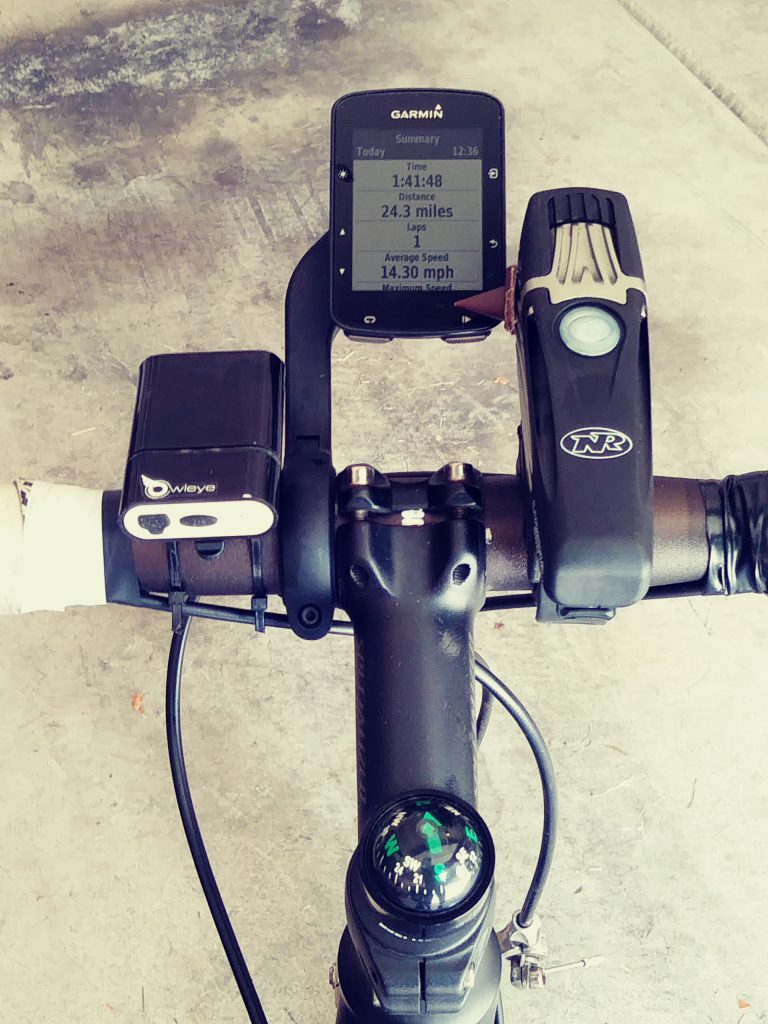 In 2019, I did a solo ride from Canada to Mexico along the Pacific coast. The major change was that I now had a GPS and better lights. The GPS bike computer was an especially nice upgrade from the simple bike computer that displayed speed, distance, average speed and totals. I had a simple bubble compass to help with direction and had to check my phone to see if I was still on the right track. When the wheel sensor died and/or had no cell signal, I wasn’t sure where the adventure would take me!
