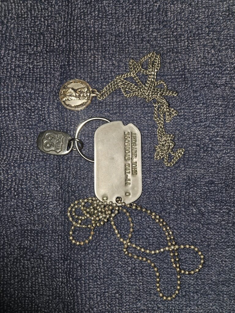 I want to thank Terri and Joel Presley for the Route 66 token and my good friend Pete Miller for the St. Christopher medal given to me before the first ride. I always take my Dad’s dog tag from WW-II for good measure on these trips.