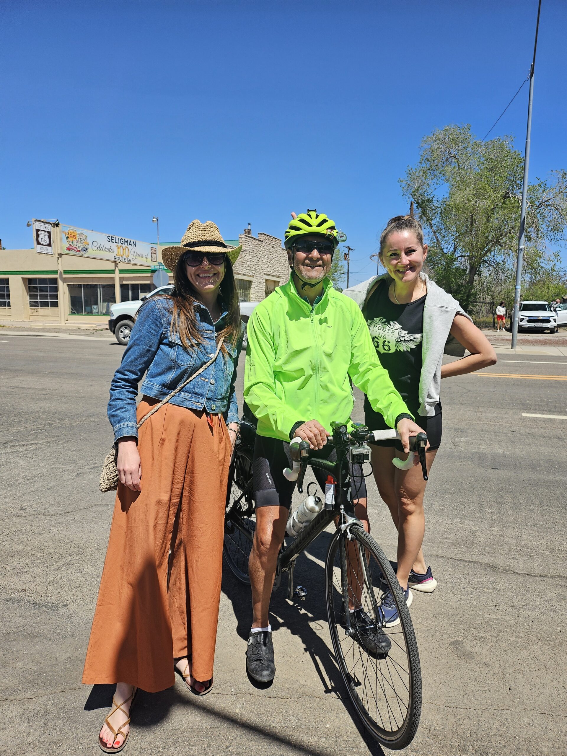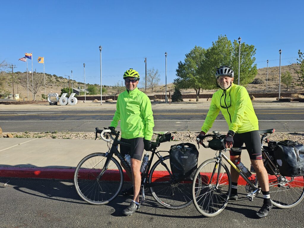 Yesterday Ron thought he had heard some conversations in French during lunch. We met up with some “French folks” that now live in San Fransisco when we were checking in. This morning, a woman in their group wished us well on our journey and was kind enough to take our picture before departing Peach Springs.