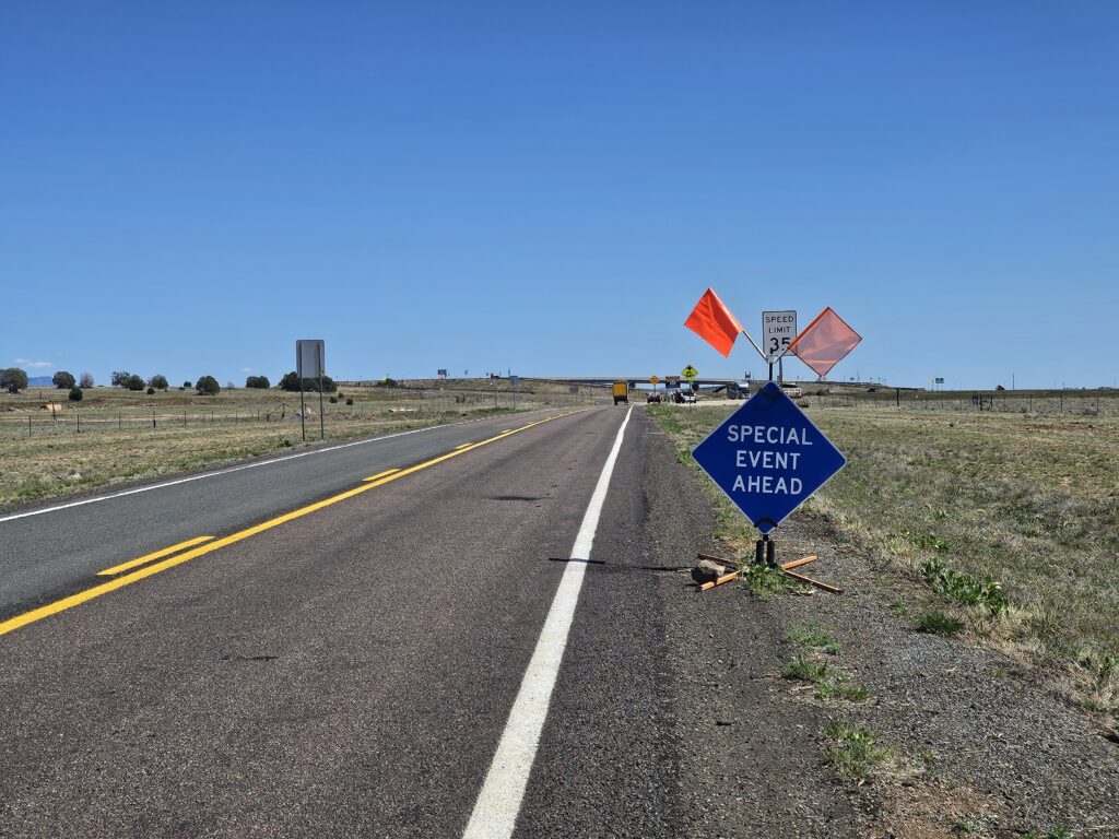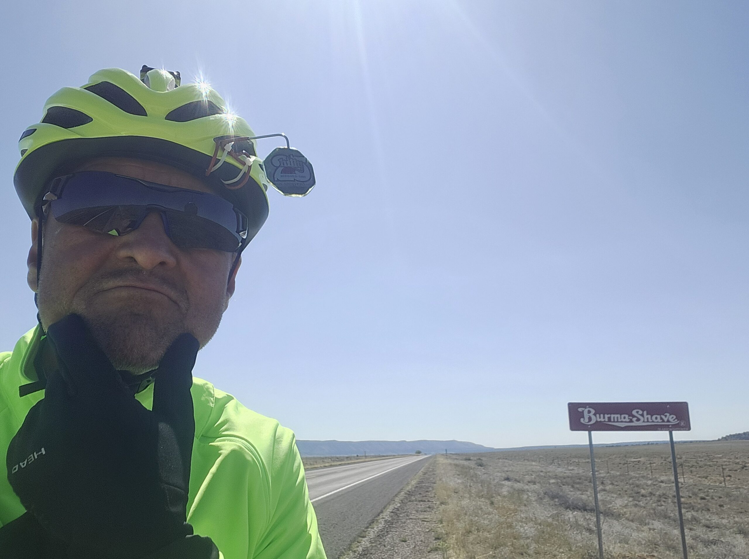 Since we couldn’t get anything in Seligman, we hoped our water would last until we made the 17 mile trek to I-40, then another 6 miles to Ash Fork. We had the usual hills, and few downhills. There were several more Burma Shave signs along the way as well. When we got to the I-40 entrance, we were in for a surprise.