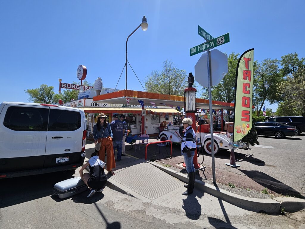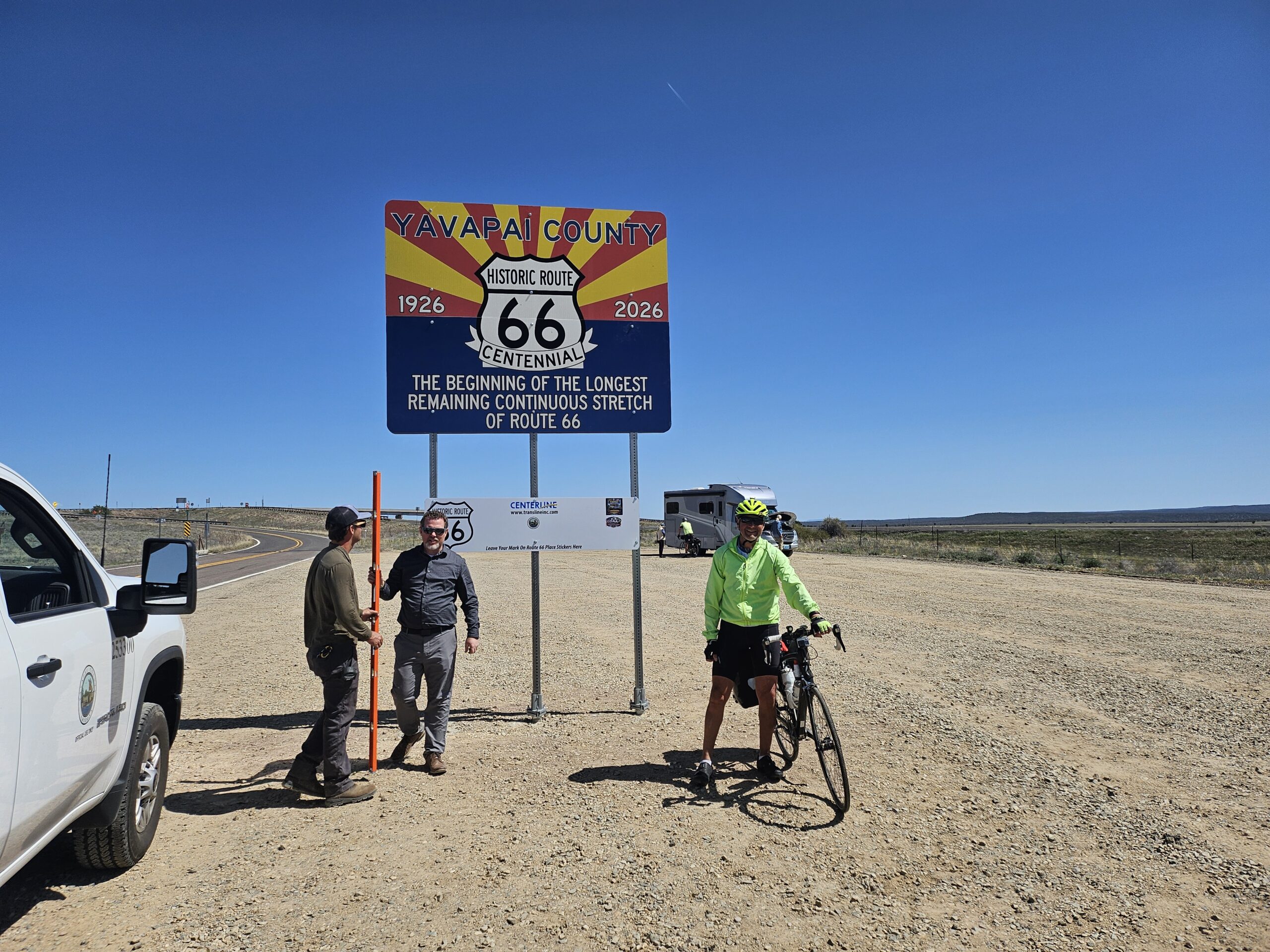 As a commemoration of the 100th anniversary of Route 66, a crew was erecting a new sign. Ron found something more interesting. He got tips on out rigging his camper for an upcoming trip to Alaska.