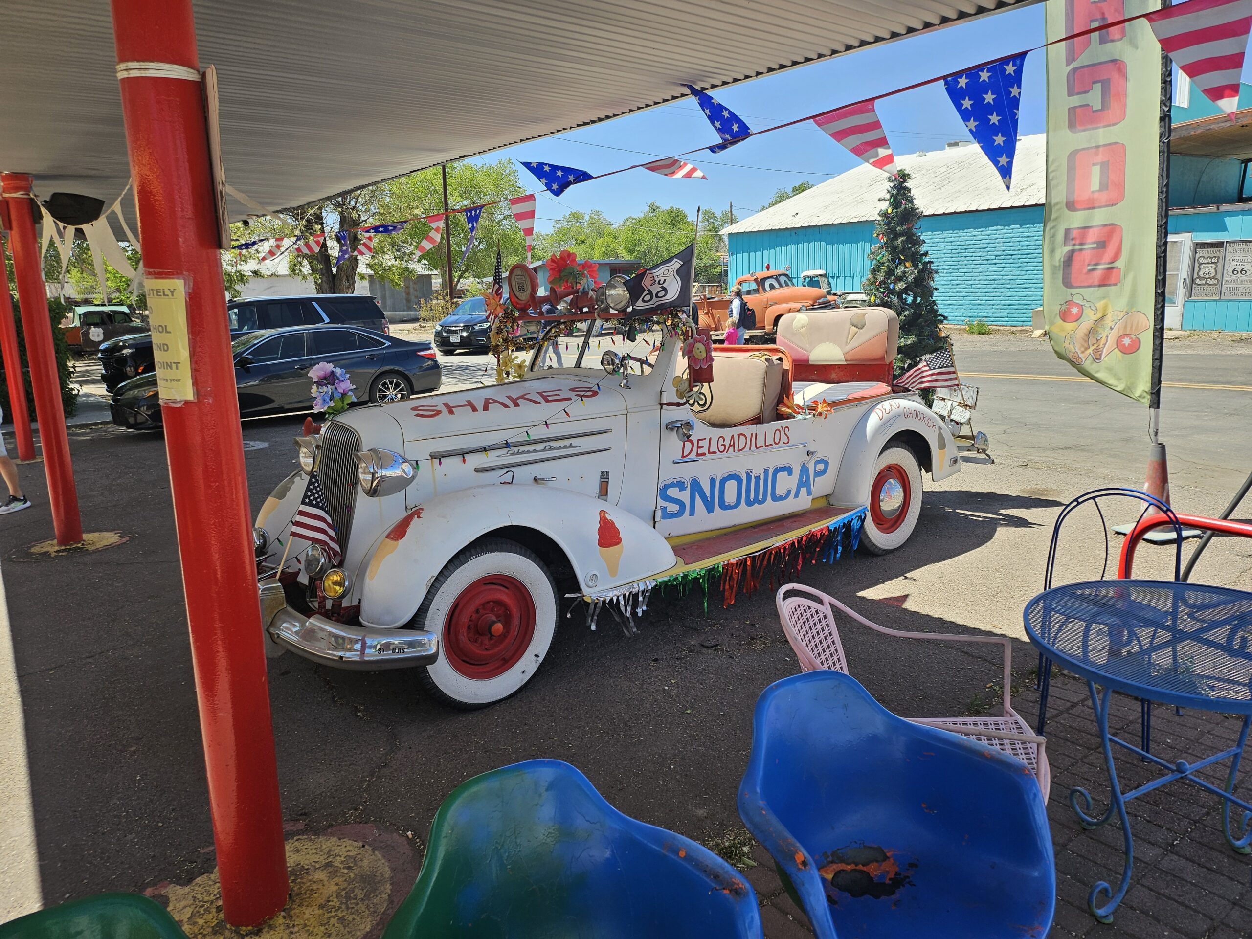 When we reached Seligman, our worst fears were confirmed. There was lots to see, but nothing to eat or drink. The power outage had closed all hotels and restaurants. The place that had 75 flavors of milk shakes could only tempt us, but not deliver.