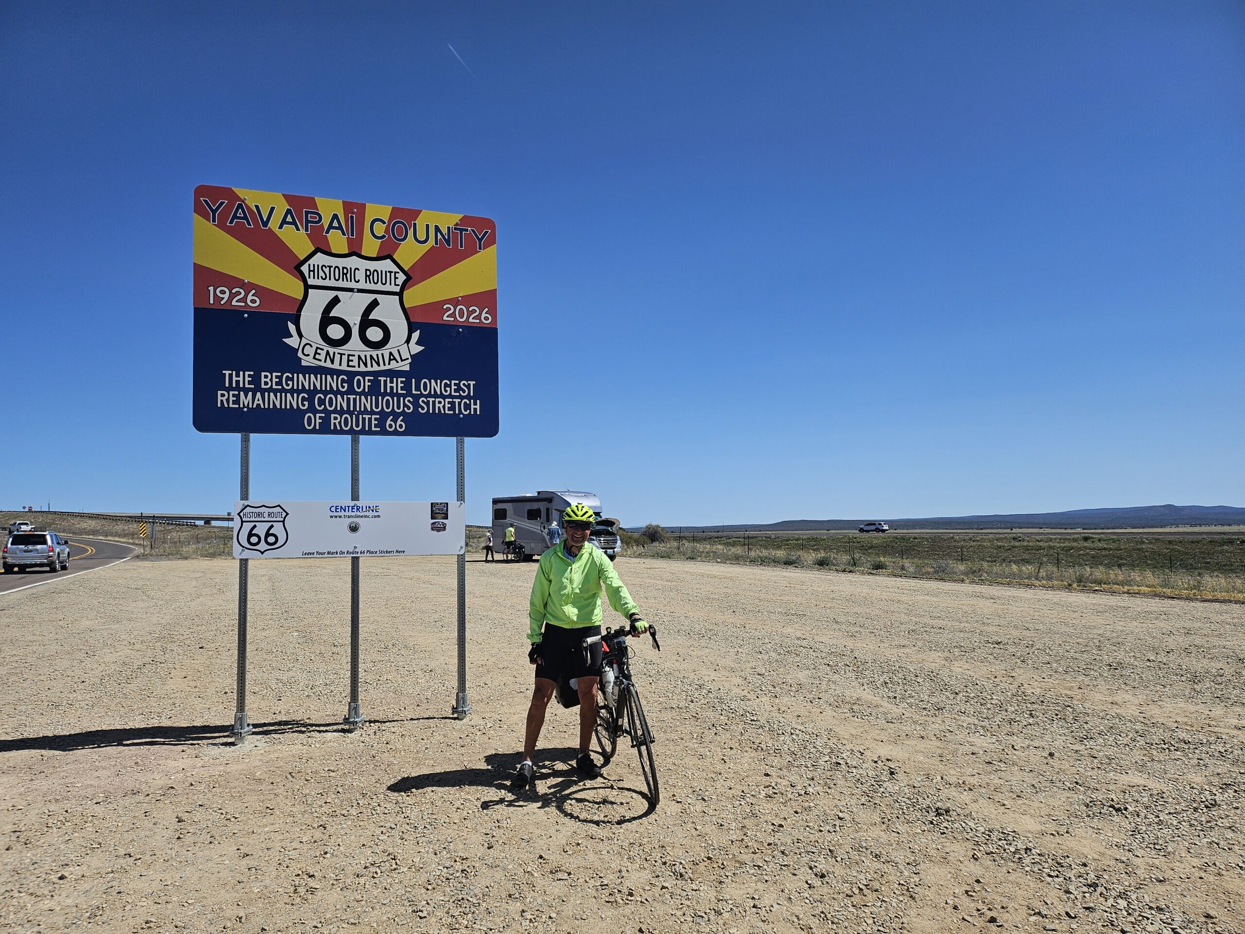 It was a hard climb out of Peach Springs and a rude start to the day. Luckily, the mental jukebox carried me up the first big hill. I don’t know what got Ron up the hill.